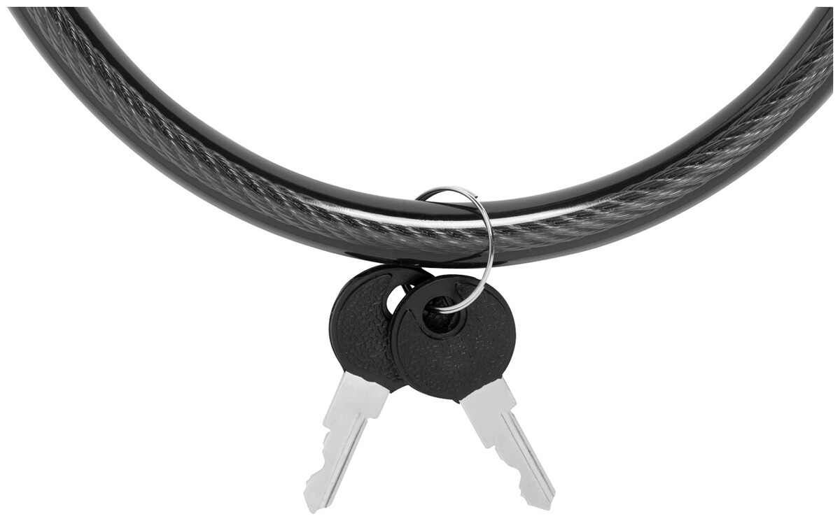 Zámek na kolo s ocelovým drátem, potaženým PVC a se 2 klíči.