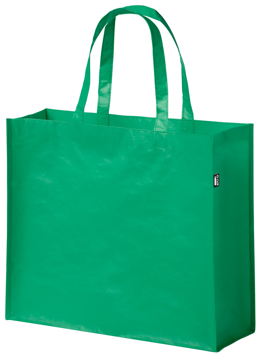 Ekologická nákupní taška z RPET polyesteru, s polaminovaným povrchem, 105 g/m2, s etiketou s označením RPET.