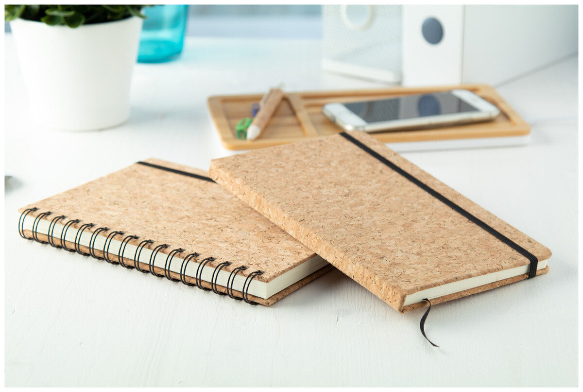 Spirálový blok A5 z přírodního korku se 100 linkovanými listy.