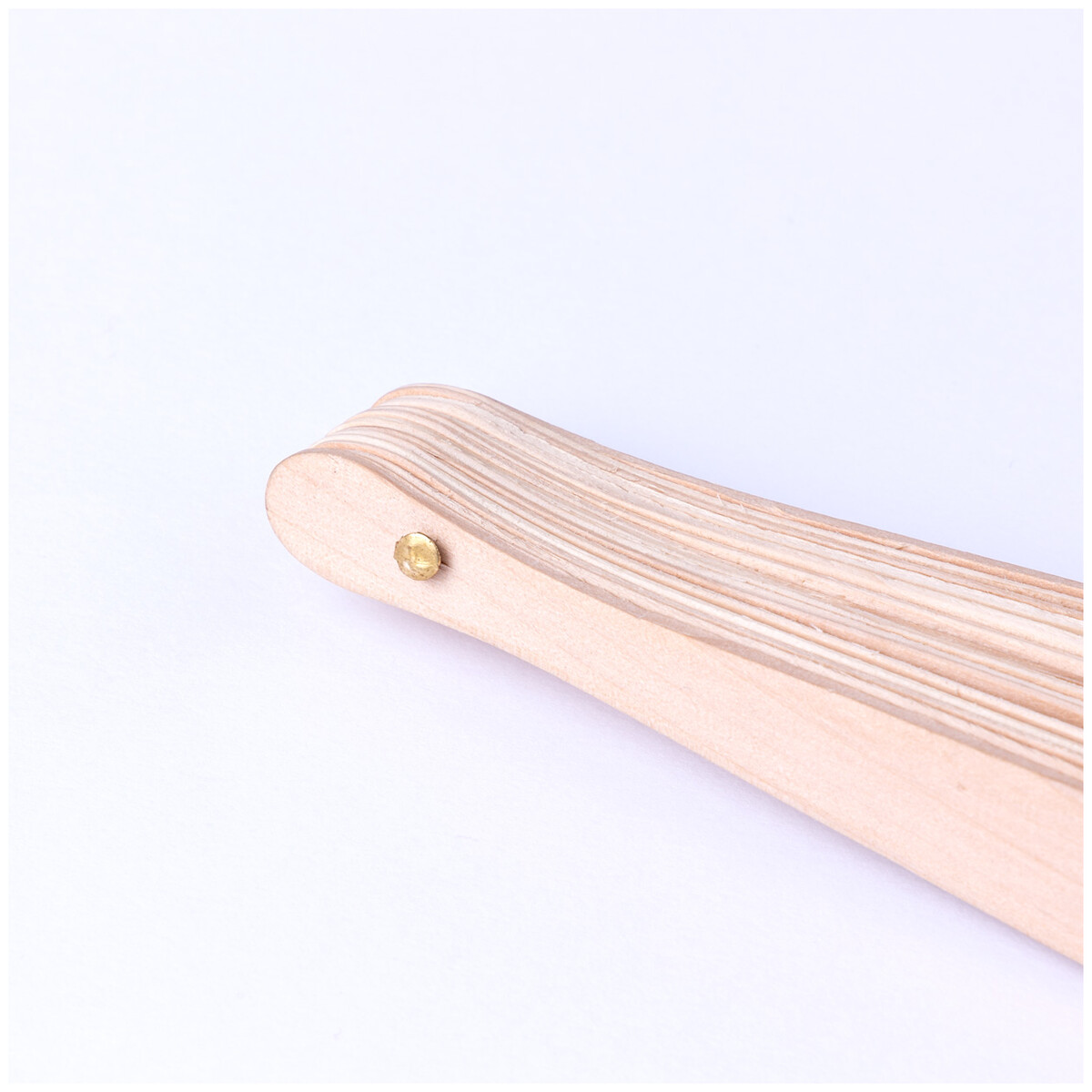 Ruční vějíř z polybavlny s dřevěnými žebry.