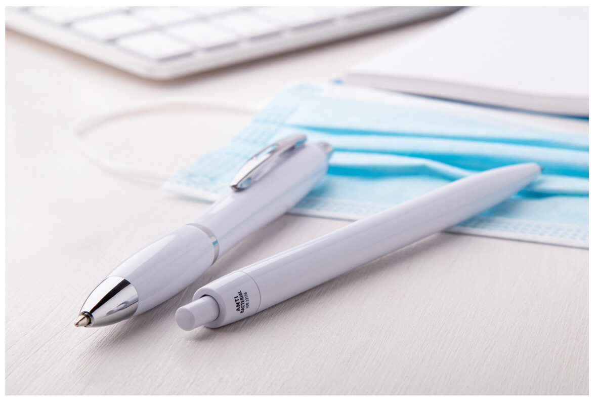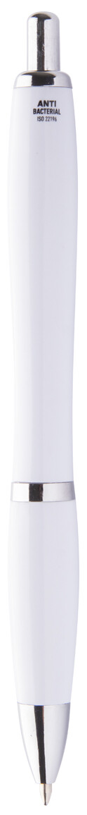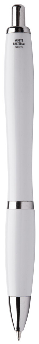 Plastové kuličkové pero s antibakteriální úpravou na těle a chromovými částmi. Obsahuje přísadu nano stříbra, které zabraňuje růstu bakterií na těle pera. Se stiskacím mechanismem a modrou náplní. V souladu s ISO 22196: 2011.