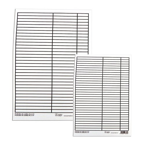 Plastová podložka pro usnadnění psaní, formát A5, oboustranná – linka 8 mm, linka 12 mm. Materiál PVC, tloušťka 300 um.