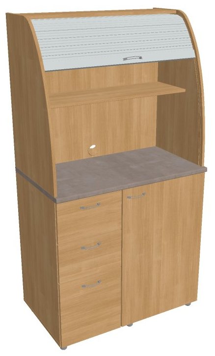 Dvě police ve vrchní části kuchyňky poskytují dostatečnou kapacitu pro vaše skleničky, hrnky či talíře. Na pracovní desku můžete umístit např. kávovar a kabelovou průchodkou v zadní části vyvedete přívodní kabel z prostoru kuchyňky.