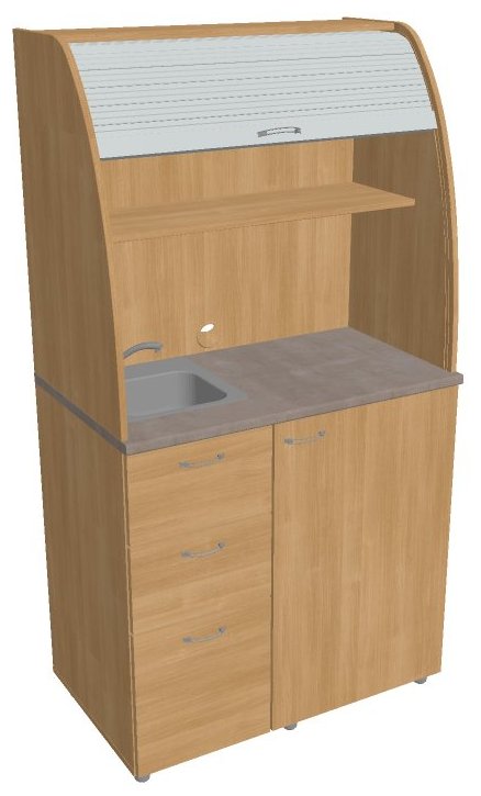 V provedení se dřezem je hloubka dvou vrchních zásuvek zkrácena právě z důvodu umístění dřezu.