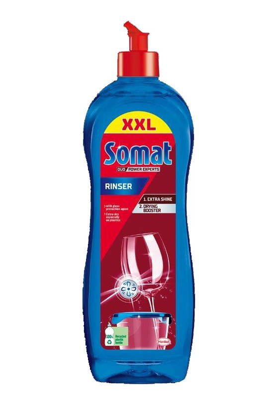Somat oplachovač vytváří na nádobí křišťálově jasný lesk. Navíc odstraňuje zbytky, které mohou v myčce zůstat během mycího cyklu. Přináší vysoký lesk beze skvrn a vápenatých usazenin. Je speciálně vyvinutý pro ochranu skleněného nádobí, kterému dodává oslňující lesk. Napomáhá rychlejšímu schnutí nádobí. Změkčuje vodu, aby stékala rovnoměrně, a zabraňuje usazování nečistot na již umytém nádobí