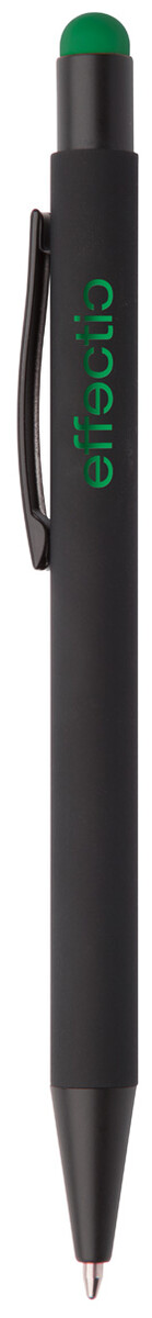 Hliníkové kuličkové a dotykové pero s pogumovanou úpravou a speciálním povrchem pro zrcadlový laser v barvě stylusu, s modrou náplní.