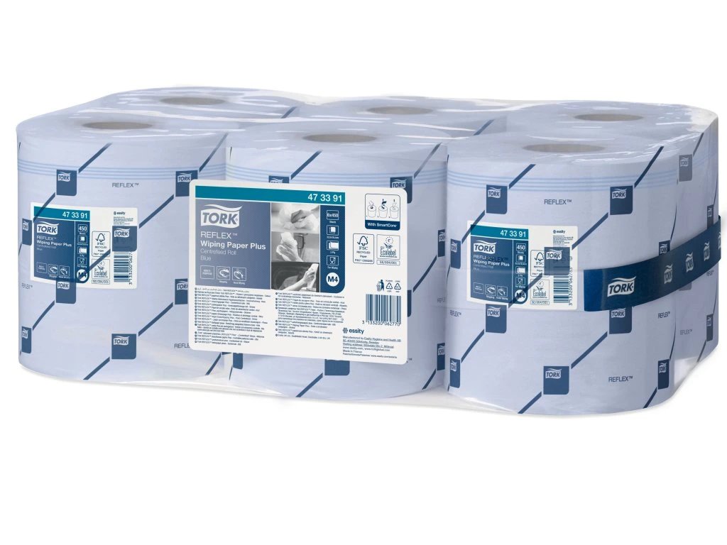 Dvouvrstvé papírové utěrky Tork Reflex™ Plus M4 jsou víceúčelové utěrky určené ke stírání tekutin i sušení rukou.