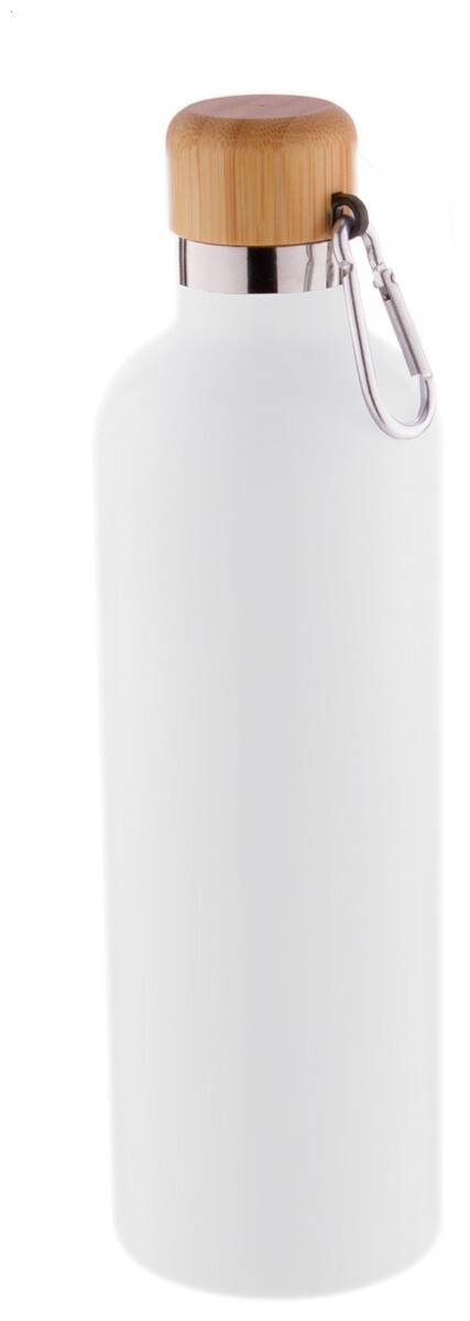 Dvoustěnná nerezová termoska s bambusovým uzávěrem a karabinkou, 500 ml.