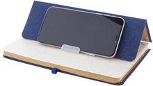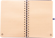 Spirálový blok A5 s deskami potaženými polyesterem RPET s plastovým držákem na mobil a tablet z pšeničné slámy. Se 70 linkovanými listy z recyklovaného kraftového papíru, gumičkou a držákem na pero.