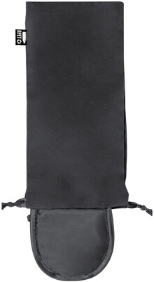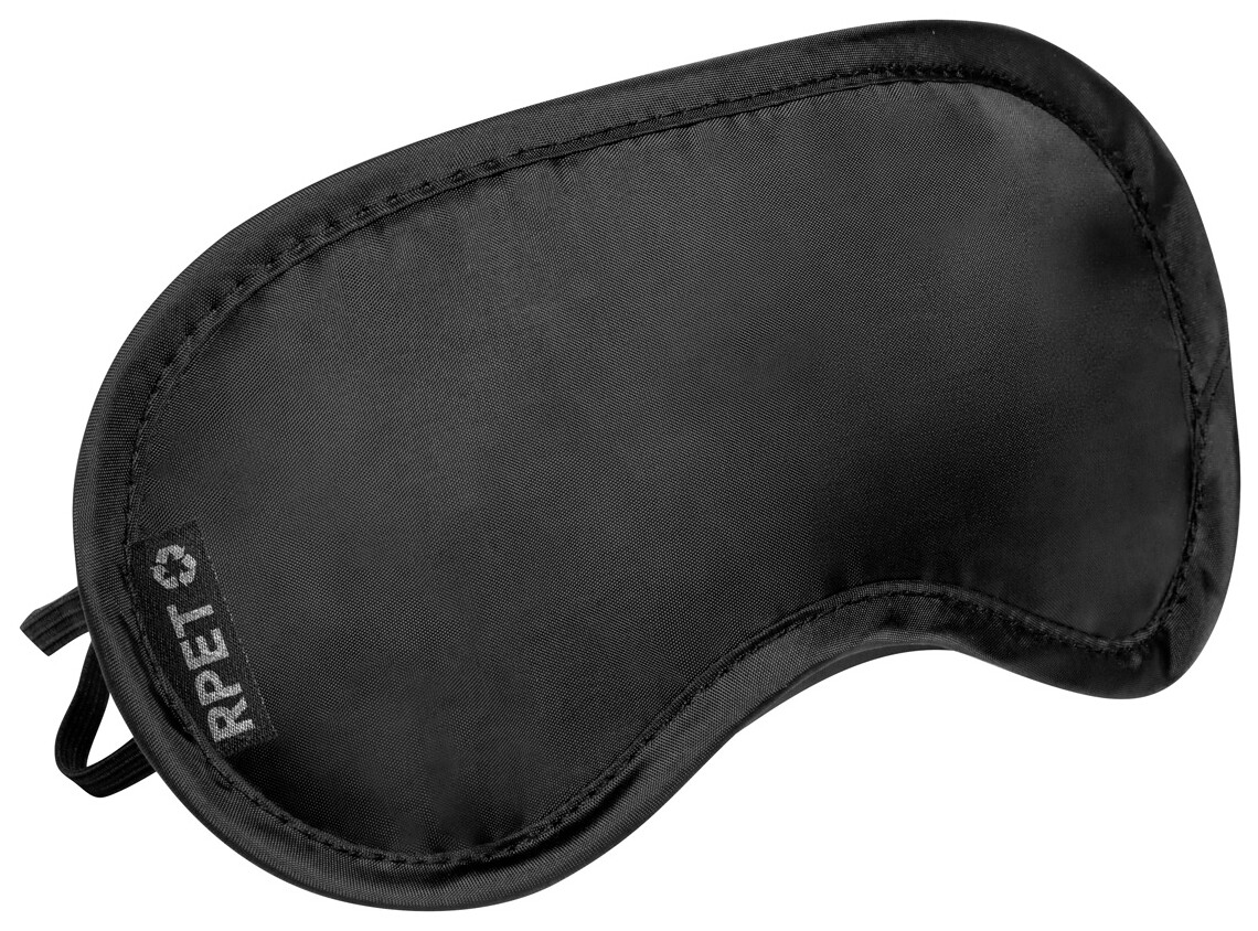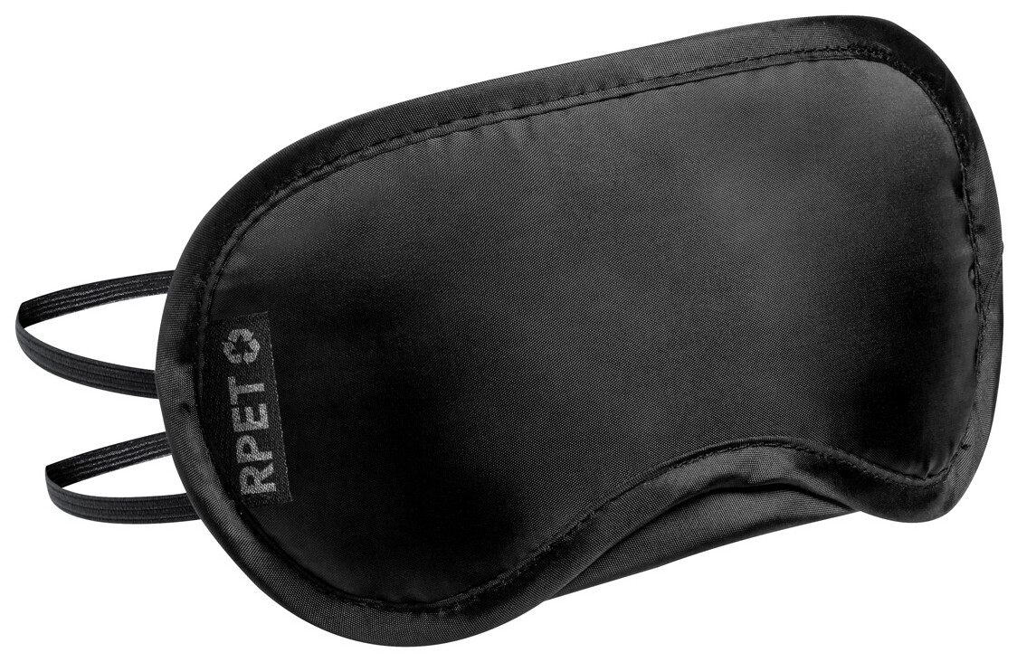 RPET polyesterová cestovní maska na oči s gumovými pásky, v RPET sáčku se stahovací šňůrkou. S výrazným štítkem RPET.