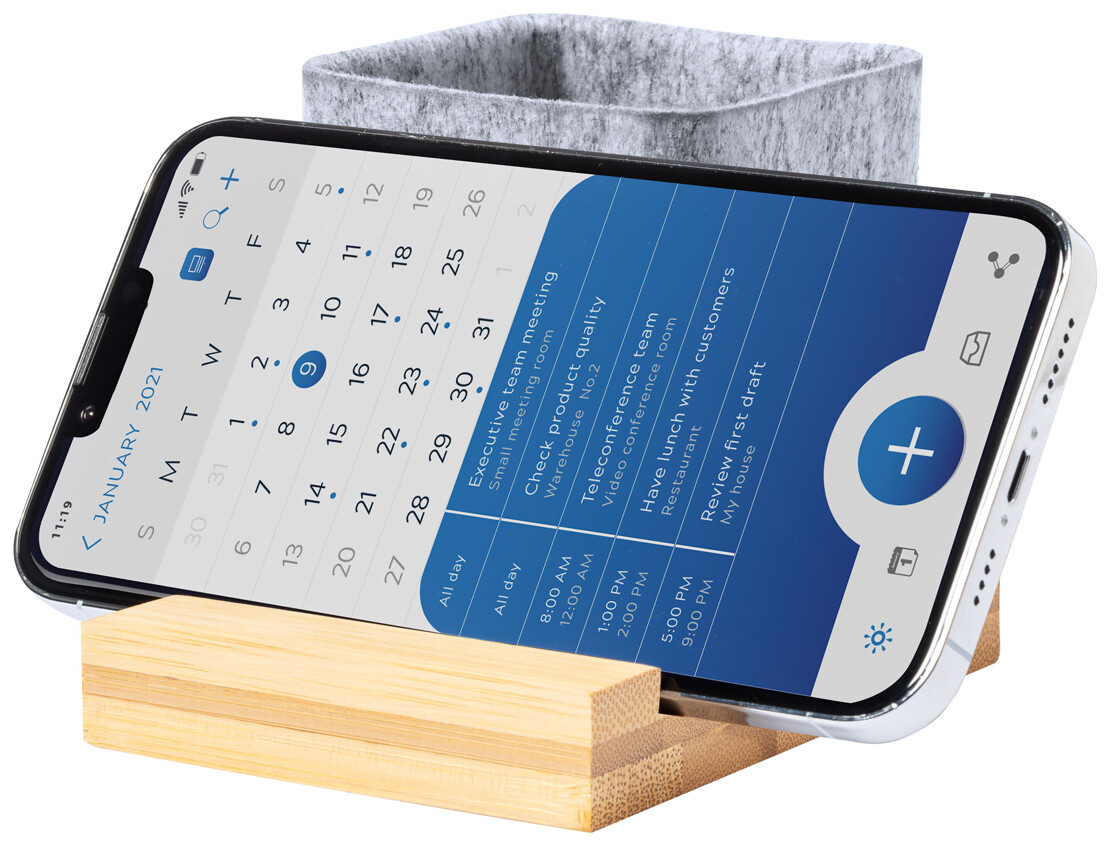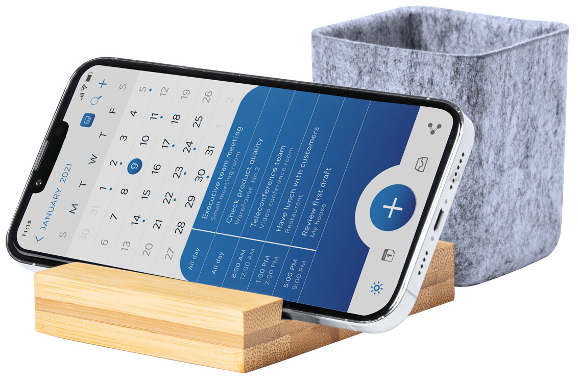 Bambusový stolní organizér se stojánkem RPET na mobilní telefon a na pera.