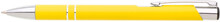 Hliníková propiska se stříbrnými doplňky a měkkým pogumovaným soft povrchem v žluté barvě. Modře píšící.
