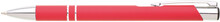 Hliníková propiska se stříbrnými doplňky a měkkým pogumovaným soft povrchem v červené barvě. Modře píšící.