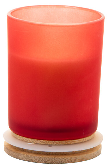 Vosková svíčka na rostlinné bázi v matné skleničce s bambusovým víčkem. Se 120 gramy vosku. V kraftové papírové krabici.