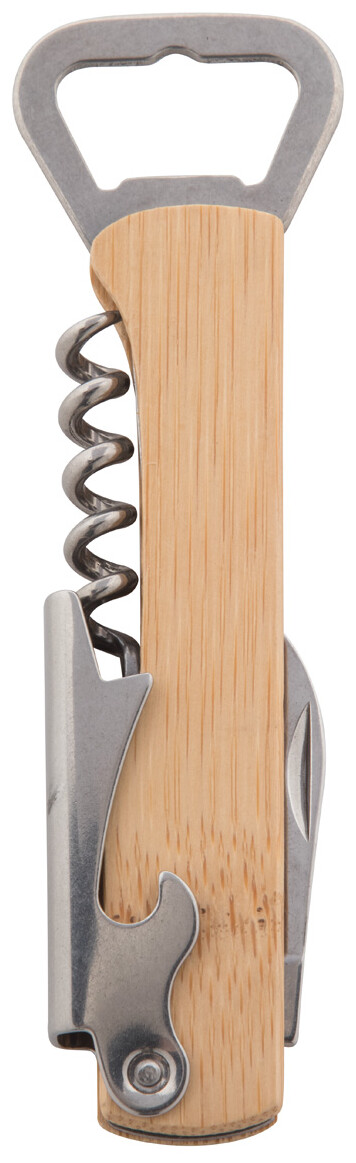 Otvírák a vývrtka z nerezové oceli s bambusovou rukojetí.