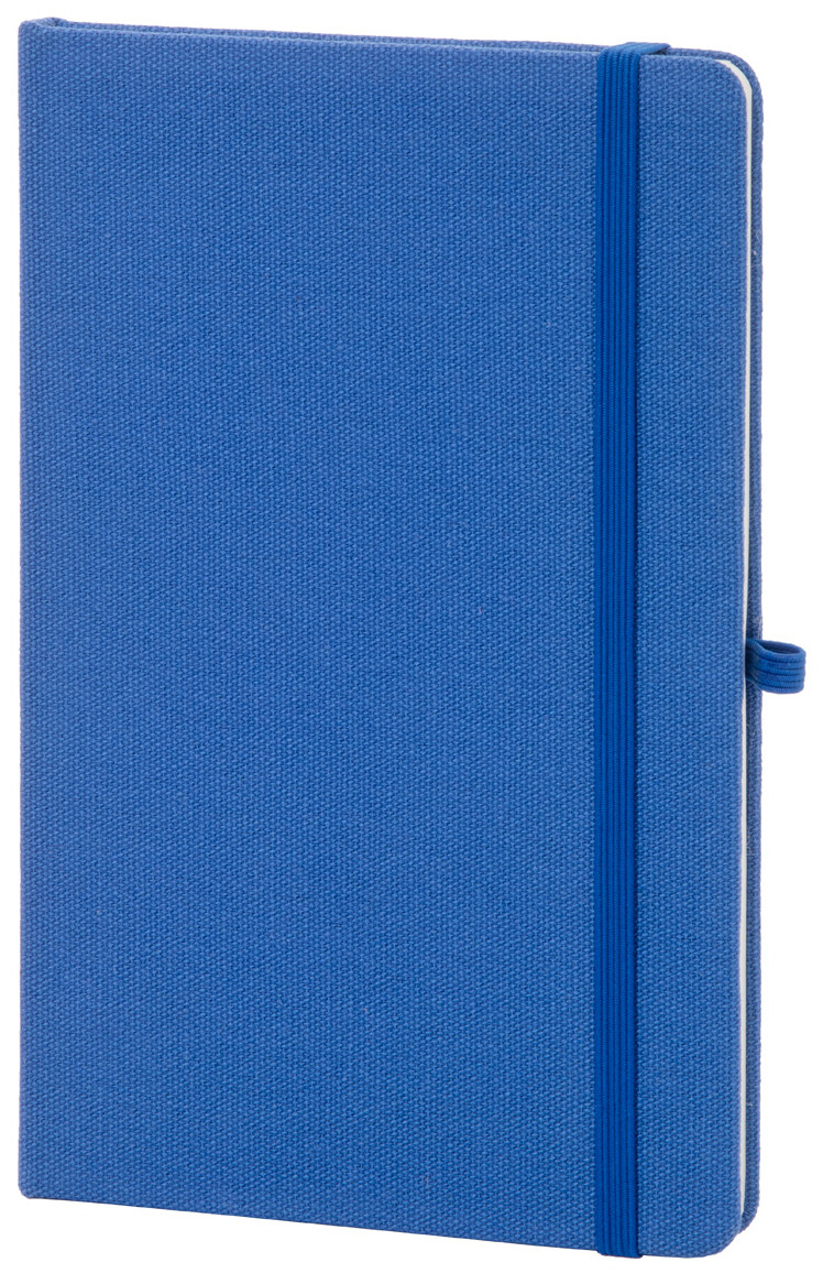 Blok potažený recyklovanou bavlnou s 80 linkovanými listy z recyklovaného papíru. Se záložkou v odpovídající barvě, gumičkou a držákem na pero. Velikost A5.