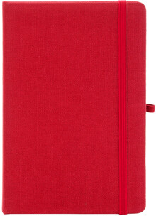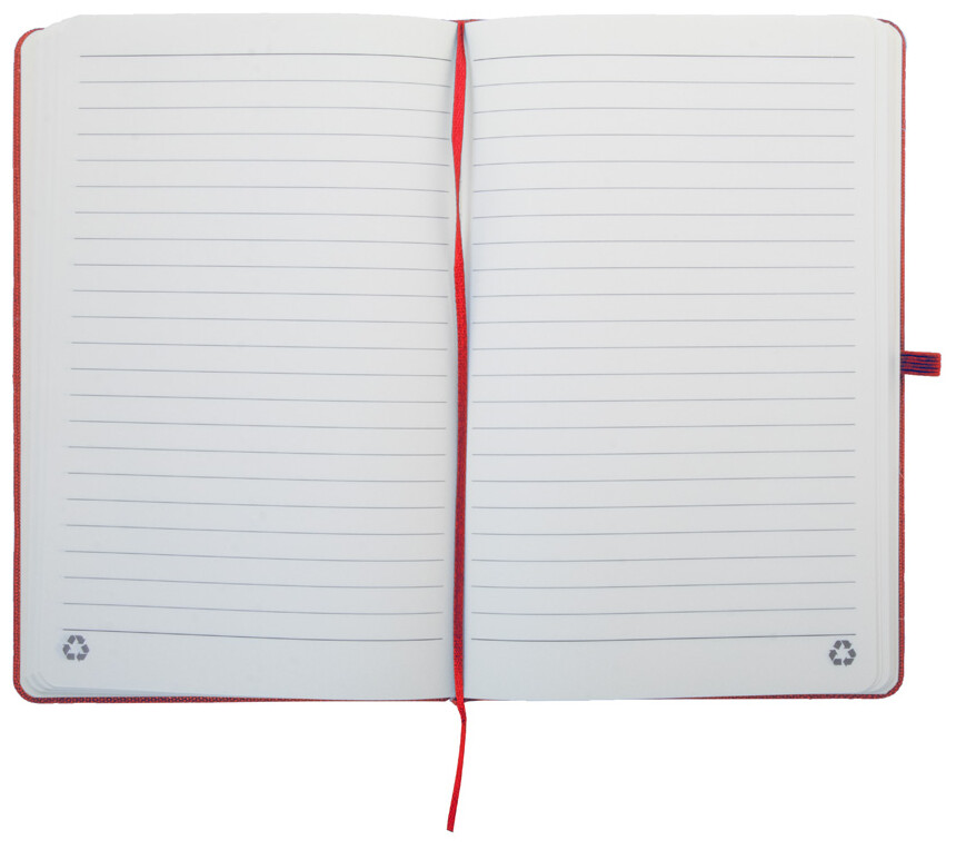 Blok potažený recyklovanou bavlnou s 80 linkovanými listy z recyklovaného papíru. Se záložkou v odpovídající barvě, gumičkou a držákem na pero. Velikost A5.