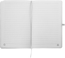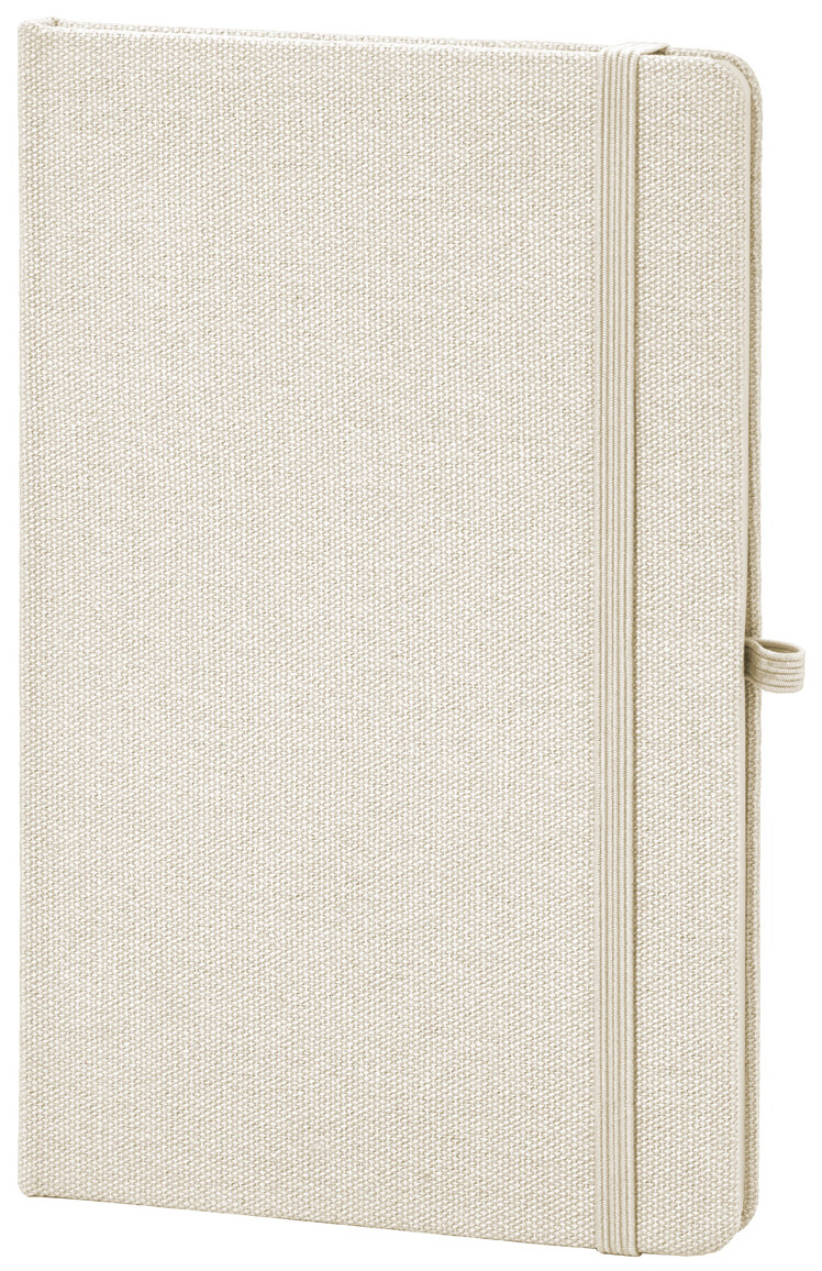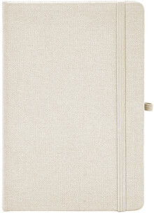 Blok potažený recyklovanou bavlnou s 80 linkovanými listy z recyklovaného papíru. Se záložkou v odpovídající barvě, gumičkou a držákem na pero. Velikost A5.