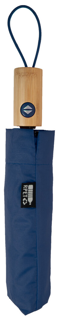 Plně automatický (otevřít/zavřít), větruodolný skládací deštník s 8 panely v pouzdře v odpovídající barvě. S kovovým rámem, sklolaminátovými žebry a bambusovou rukojetí. Pongee 190T RPET. S výrazným štítkem RPET.