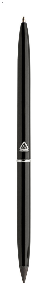 Otočné kuličkové pero 2v1 z recyklovaného hliníku a pero bez inkoustu. S modrou náplní a špičkou z kovové slitiny, která oxiduje papír. Toto pero píše podobně jako tužka a navíc je stíratelné.