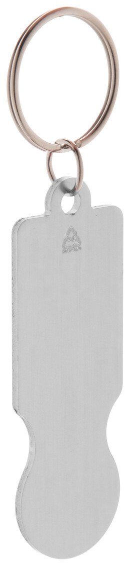 Přívěšek na klíče z recyklovaného hliníku s mincí do nákupního vozíku.