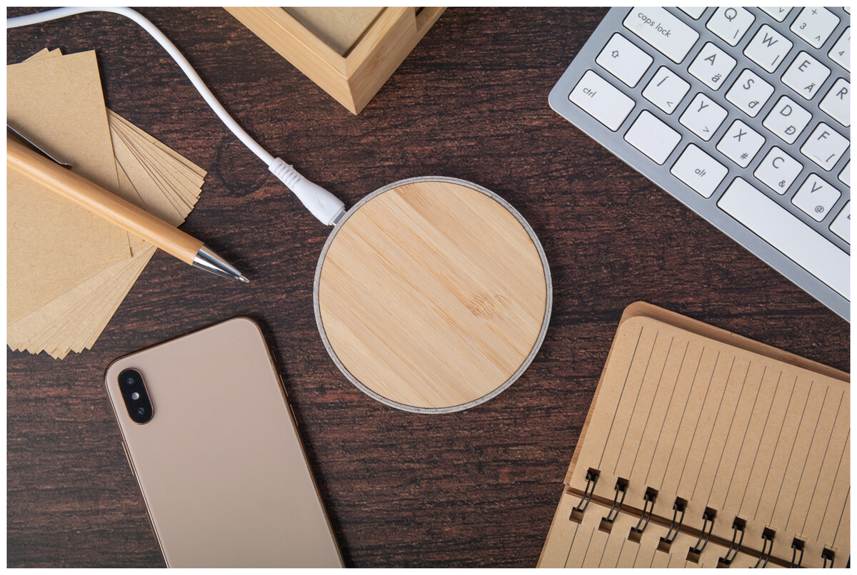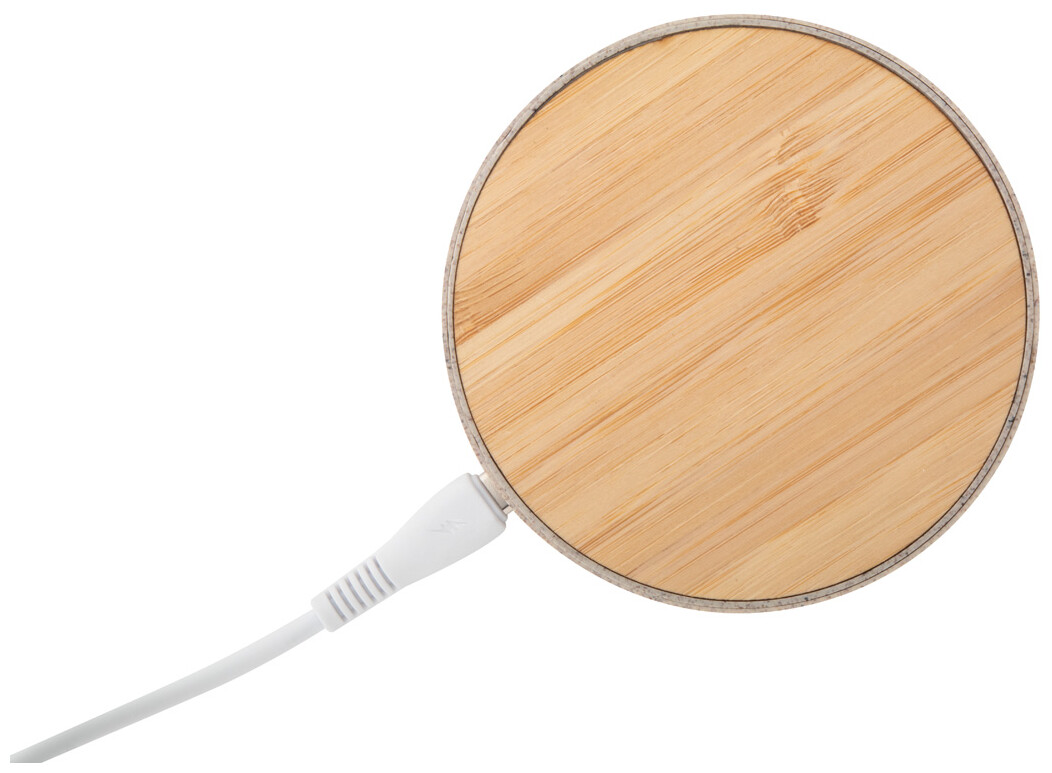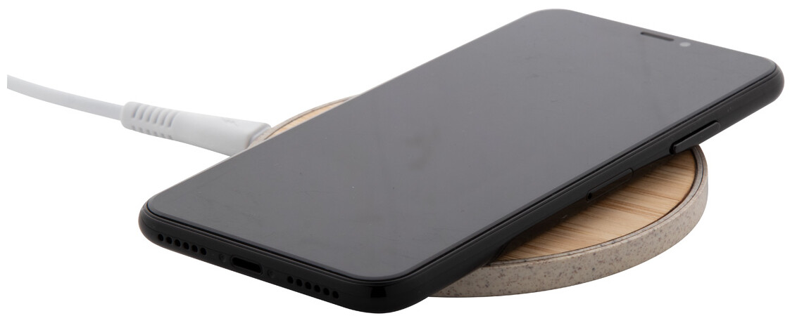 Bezdrátová rychlonabíječka (15W) v ekologickém plastovém krytu z pšeničné slámy a bambusu. Včetně USB nabíjecího kabelu.