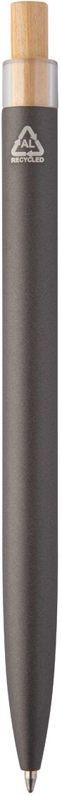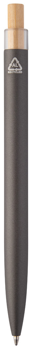 Kuličkové pero z recyklovaného hliníku s bambusovým tlačítkem. S modrou náplní.