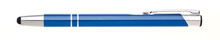 Modrá varianta oblíbené propisky ORIN, tentokrát s ukončením TOUCH. Lesklé tělo se dvěma stříbrnými proužky a stříbrnými doplňky.