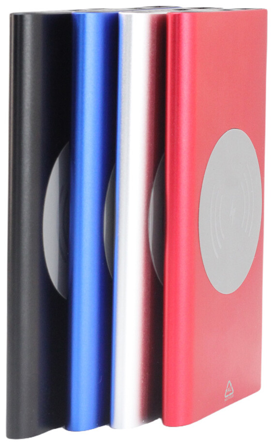 USB power banka z recyklovaného hliníku s vestavěnou bezdrátovou rychlonabíječkou (15W) a 4000 mAh baterií. S 1 portem USB a 1 portem USB-C pro nabíječku. Vstupní port USB-C. Včetně USB nabíjecího kabelu.