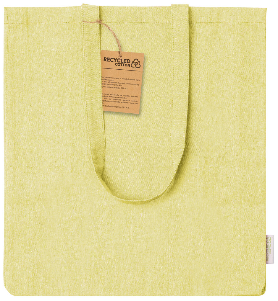 Nákupní taška z recyklované bavlny s klínem, dlouhými uchy a výrazným štítkem z recyklované bavlny. 100% recyklovaná bavlna, 140 g/m2.