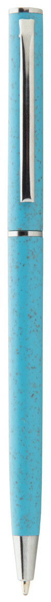 Ekologické plastové kuličkové pero z pšeničné slámy s chromovými detaily. S modrou náplní.