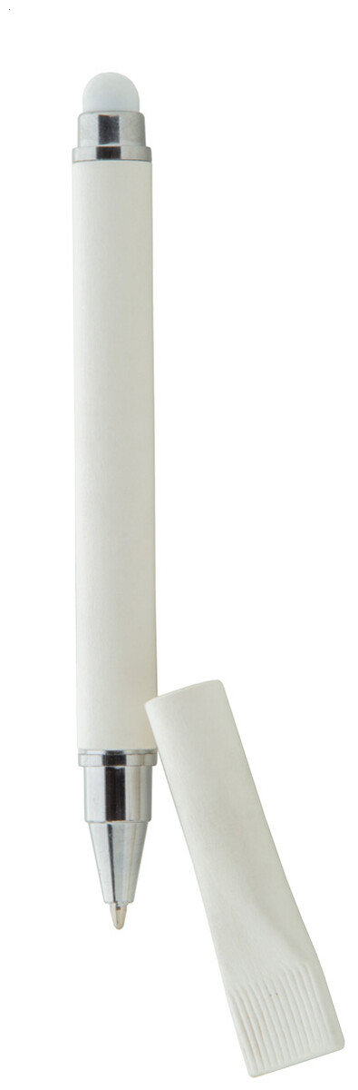 Kuličkové pero z recyklovaného papíru a dotykové pero s odpovídající barevnou krytkou. S modrou náplní.