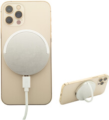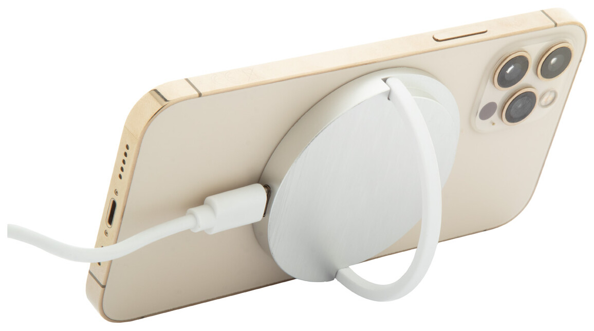Magnetická bezdrátová rychlonabíječka (15W) s kroužkem držáku na mobil z recyklovaného hliníku a pouzdrem z recyklovaného ABS plastu. Kompatibilní s iPhone® 12 nebo novějším. Včetně USB-C nabíjecího kabelu.