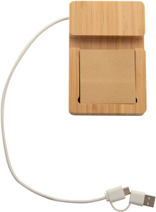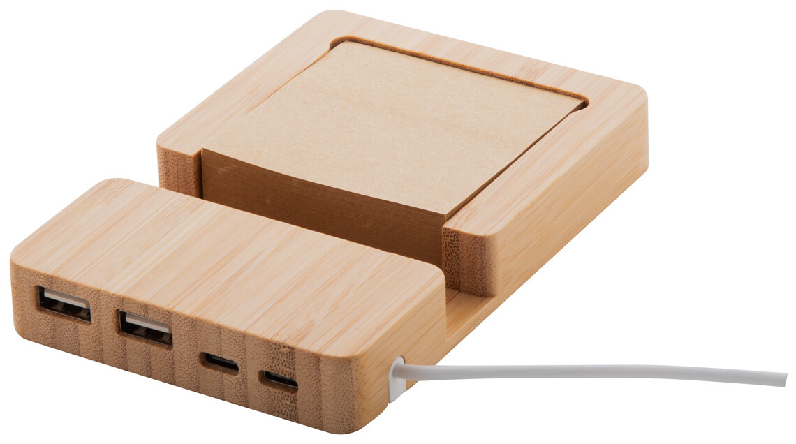 Bambusový USB hub s držákem na mobil a 130 listy kraftových papírových lepících papírků (60x60 mm). Se 2 USB a 2 USB-C porty, USB 2.0. Včetně kabelu s připojením USB a USB-C.