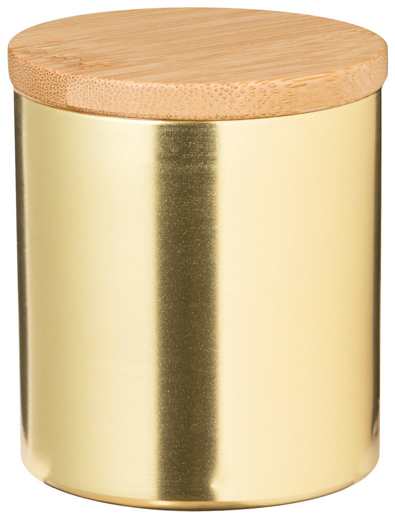 Vanilková vonná svíčka v hliníkovém držáku s bambusovým víčkem.