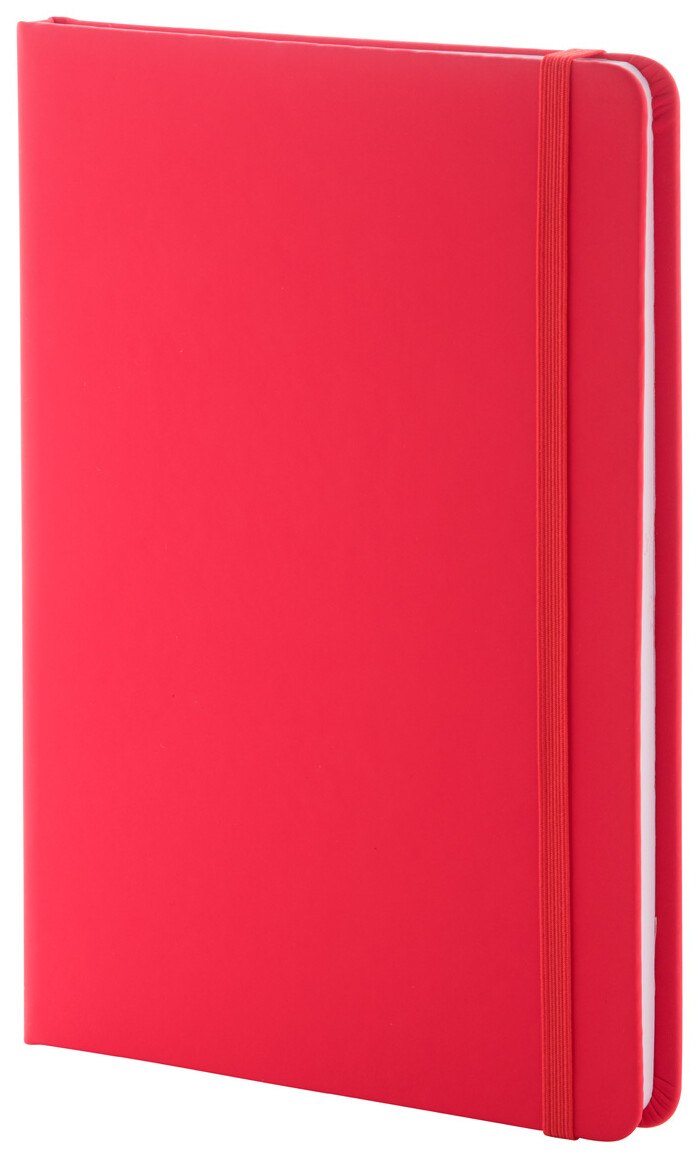 Blok A5 z recyklované PU kůže se 100 čistými listy z recyklovaného papíru. Se záložkou v odpovídající barvě a gumičkou.