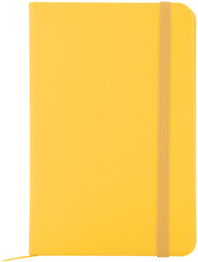 Blok A6 z recyklované PU kůže se 100 čistými listy z recyklovaného papíru. Se záložkou v odpovídající barvě a gumičkou.
