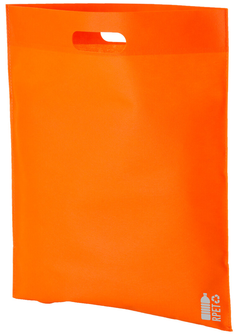 Nákupní taška z netkané textilie RPET s vysekávanými uchy, 70 g/m2. S výrazným znakem RPET.