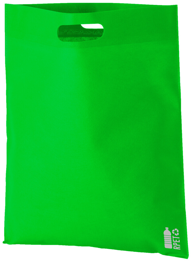 Nákupní taška z netkané textilie RPET s vysekávanými uchy, 70 g/m2. S výrazným znakem RPET.