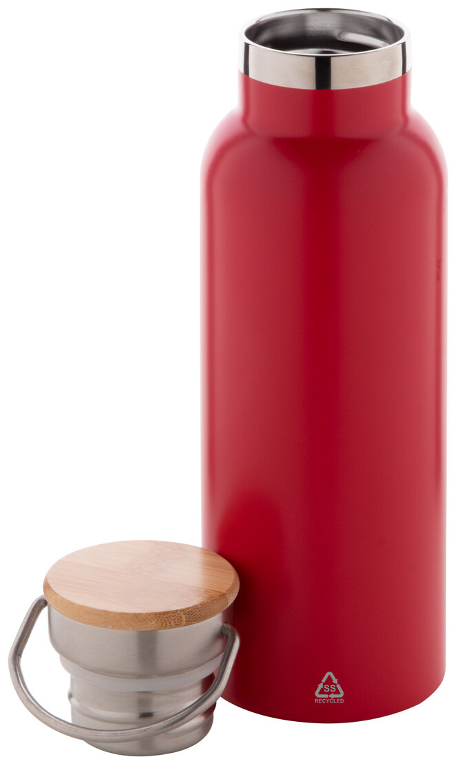 Dvoustěnná vakuově izolovaná termoska z recyklované nerezové oceli s bambusovým víčkem. 500 ml.