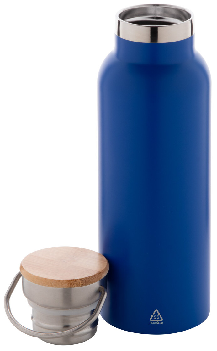 Dvoustěnná vakuově izolovaná termoska z recyklované nerezové oceli s bambusovým víčkem. 500 ml.
