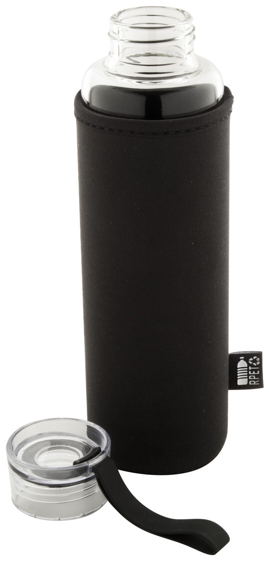 Láhev z recyklovaného skla s PS plastovým víčkem, silikonovým páskem a RPET neoprenovýmobalem, 550 ml. Nevhodné pro sycené nápoje.