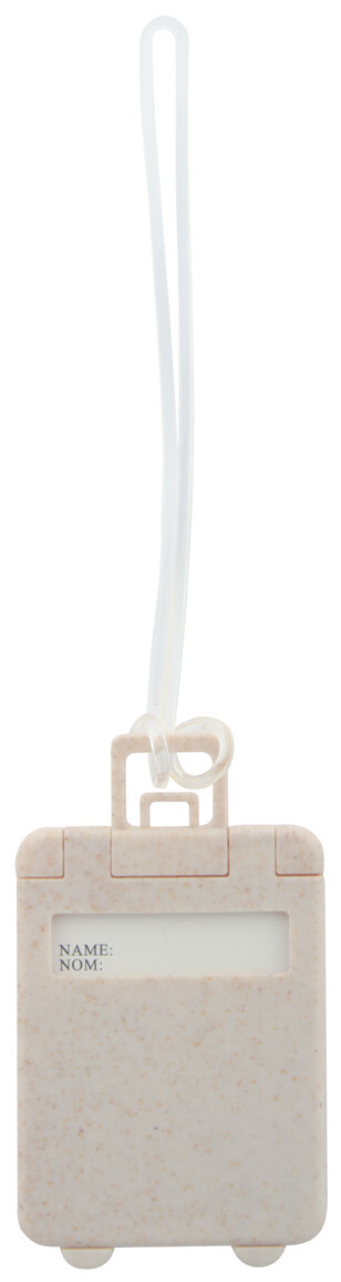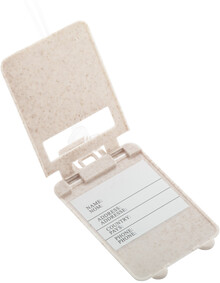 Ekologická plastová visačka na zavazadla z pšeničné slámy ve tvaru kufru, s elastickým páskem.