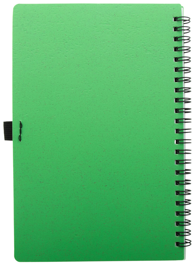 Ekologický spirálový blok A5 potažený plastem z pšeničné slámy se 70 linkovanými listy z recyklovaného papíru a držákem na pero.
