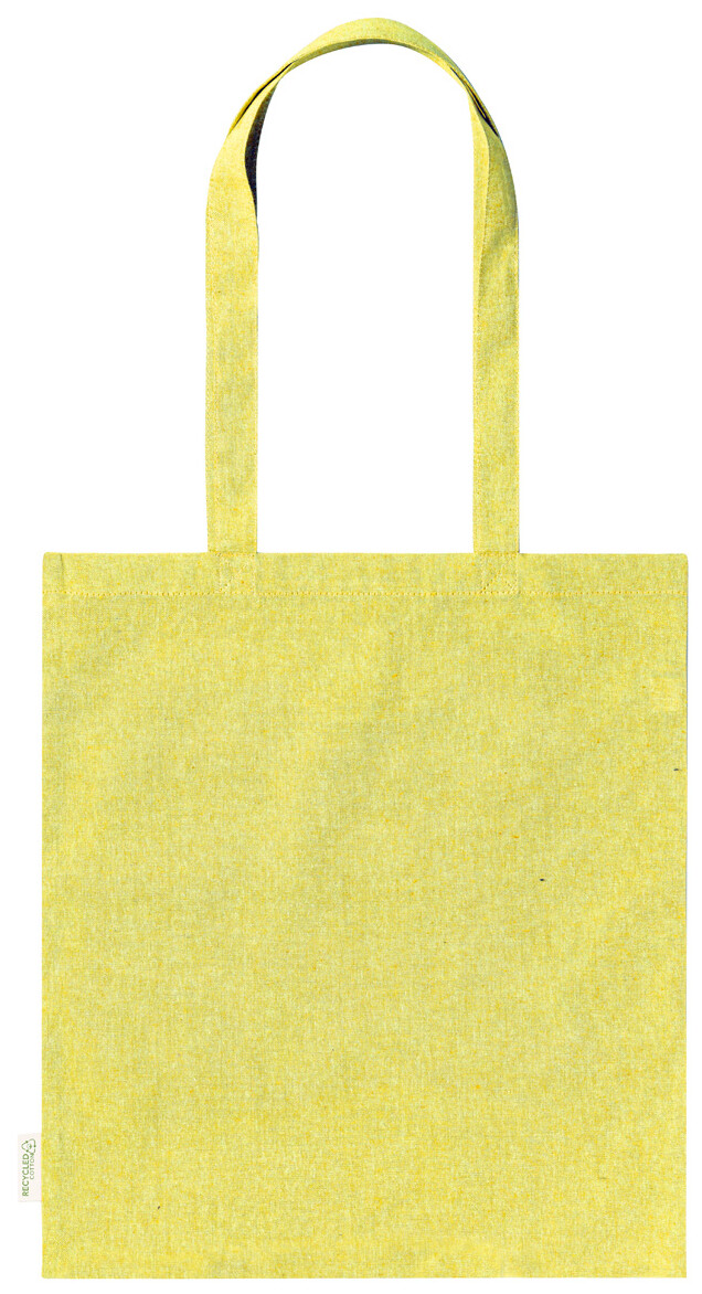 Opakovaně použitelná nákupní taška ze 100% recyklované bavlny s dlouhými uchy a výrazným štítkem z recyklované bavlny, 140 g/m2.