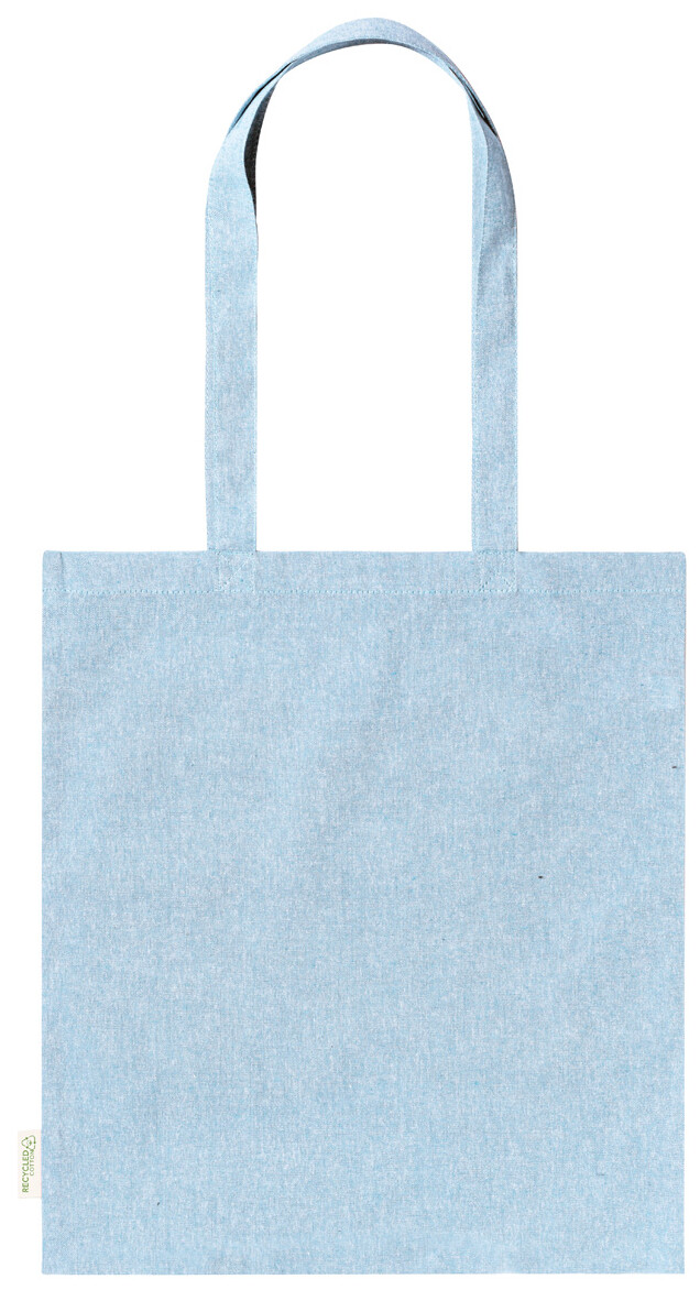 Opakovaně použitelná nákupní taška ze 100% recyklované bavlny s dlouhými uchy a výrazným štítkem z recyklované bavlny, 140 g/m2.
