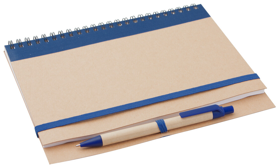 Nelinkovaný blok z recyklovaného papíru, se 60 listy a s papírovým kuličkovým perem.