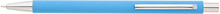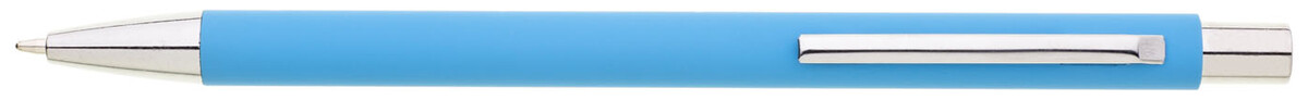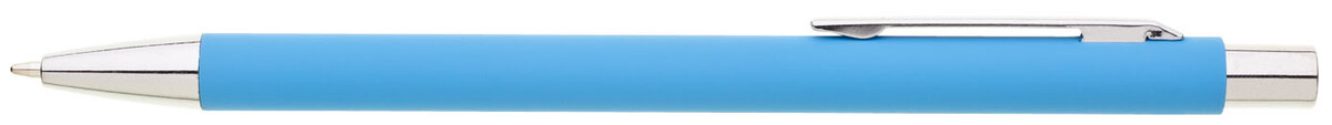 Tenká, jednoduchá propiska se světle modrým pogumovaným tělem a chromovými doplňky. Náplň X20, modře píšící.
