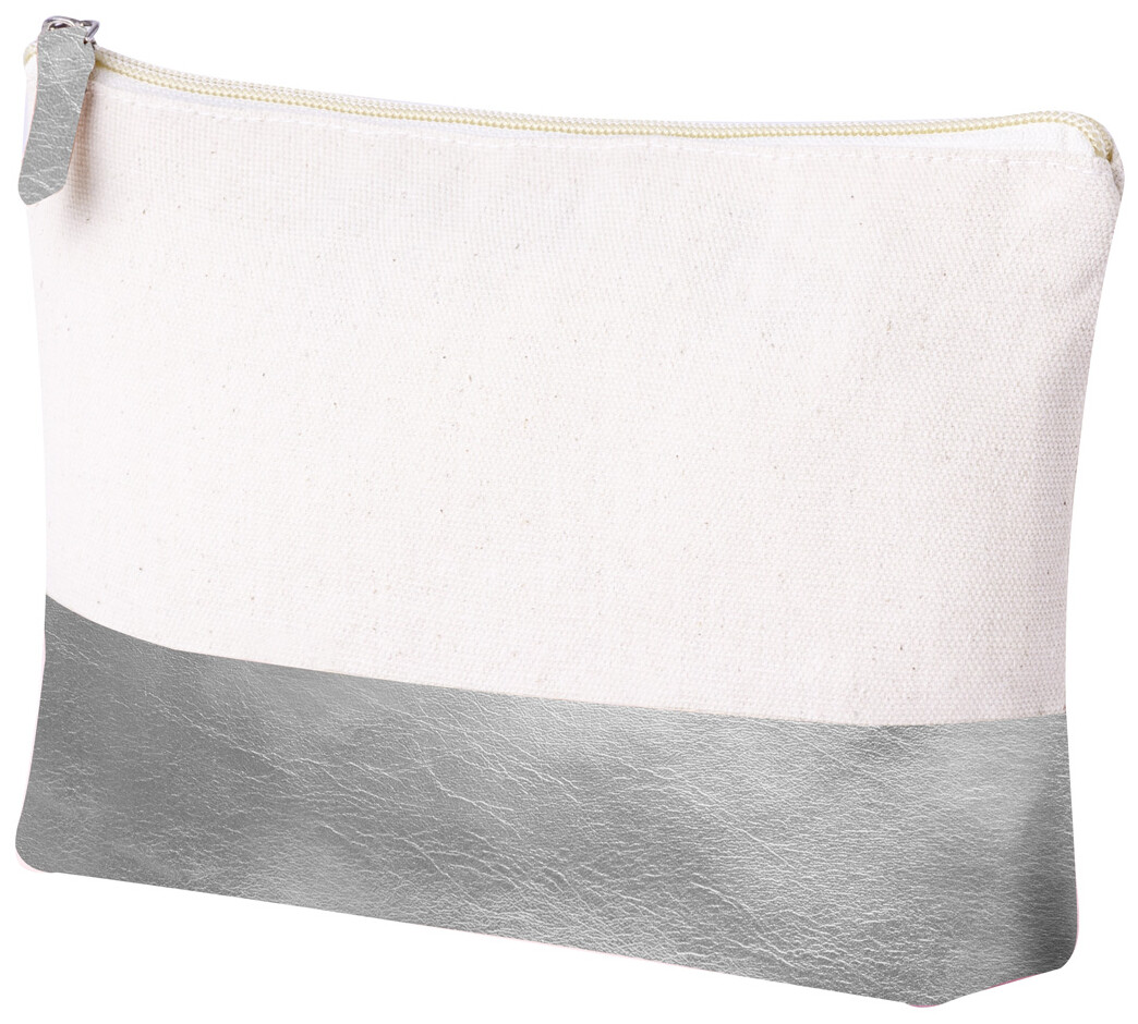 Dvoubarevná kosmetická taštička na zip z bavlny a metalické PU kůže.