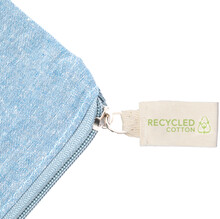 Kosmetická taštička na zip z recyklované bavlny. S výrazným štítkem z recyklované bavlny.